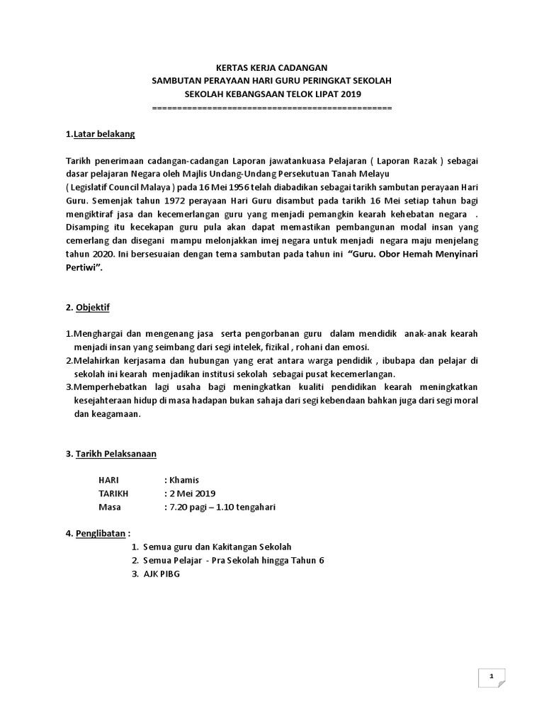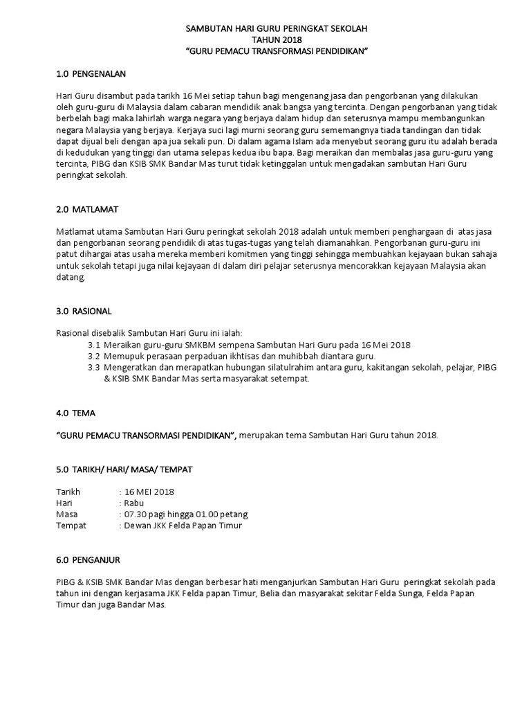 Kertas Kerja Sambutan Hari Guru Peringkat Sekolah Pdf
